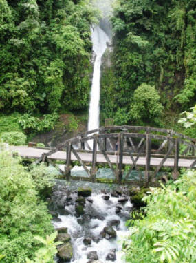 WATERFALLS: By 11:30 a.m. we’ll arrive at the first of 2 spectacular waterfalls, "La Paz" (“The Peace" falls). This impressive waterfall is a triple sault of pristine water producing an effervescent pool of water surrounded by lush rainforest vegetation. A road bridge is located directly in front of the falls giving you an excellent spot to view the falls. |